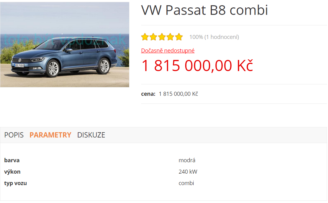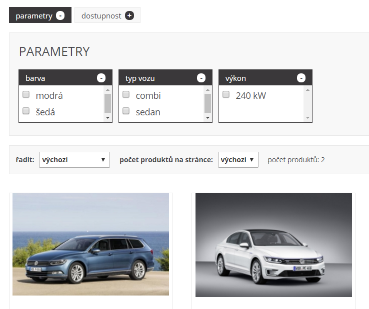 Na níže uvedených obrázcích je patrné, jak vypadá filtrování dle atributů v kategoorii (obr 1) a zobrazení atributů u konkrétního produktu (obr 2)