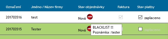 Přehled záznamů najdeme v administráci eshopu / objednávky / blacklist.