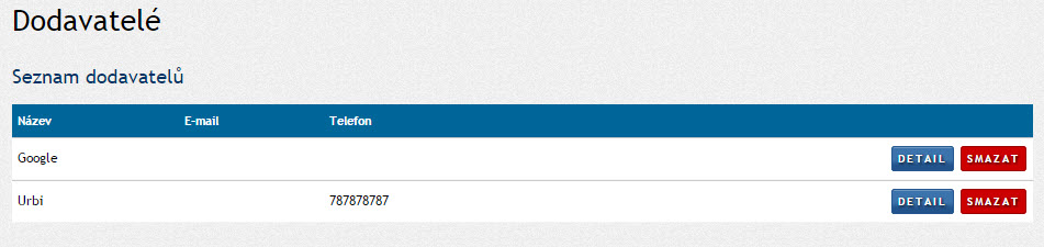 Přidání nového dodavatele je možné kliknutím na tlačítko VLOŽIT NOVÉHO DODAVATELE v pravém menu.