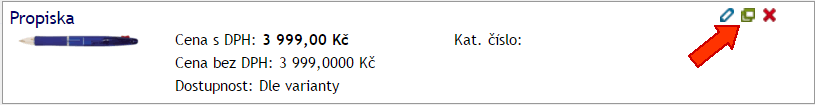Produkt je možné duplikovat kliknutím na ikonu pro duplikování. Duplikovaný produkt bude mít název doplněn o text " - kopie".