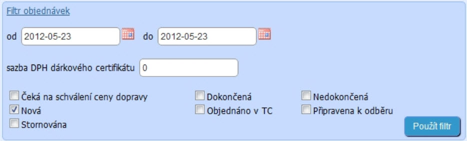 Nyní se dostáváte do rozhranní určeného pro export objednávek. V jednotlivých řádcích máte možnost stáhnout poslední exportovaný seznam pro případ nutného opakovaného načtení ekonomickým softwarem, nastavit filtr zobrazovaných objednávek, aby se nemuselo složitě vyhledávat v objednávkách, ale zobrazovaly se pouze ty, které potřebujete.