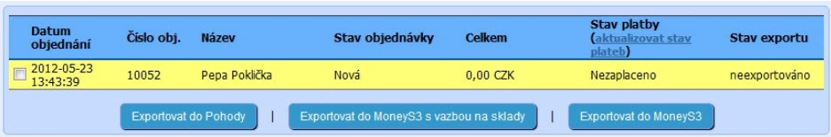 Objednáveky lze standardně exportovat do ekonomických systému Money S3 a Stormware Pohoda