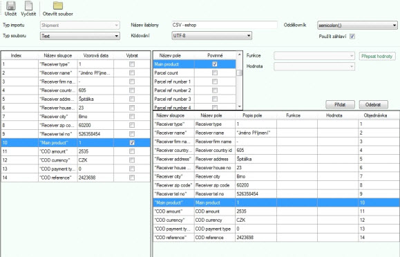 Tato funkce slouží pro export objednávek do souboru CSV ve formátu použitelném pro zásilkovou službu DPD. Pro import CSV souboru je nutné vytvořit šablonu v aplikaci DPD SSA, následně je možné CSV soubory importovat jak pomocí DPD SSA, tak i přes webové rozhraní moje DPD.