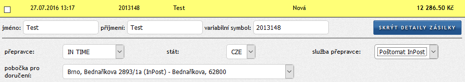 Tato funkce slouží pro export objednávek pomocí API rozhraní do systému zásilkové služby www.ulozenka.cz.