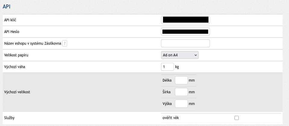 Výchozí velikost můžeme nechat prázdnou. V případě, že používate služby Zásilkovny, které vyžadují vyplnit velikost, můžete nastavit velikost, která se bude generovat pro všechny zásilky.