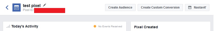 Nejdříve je potřeba mít vytvořený pixel. Po vytvoření pixelu uvidíte v hlavičce Pixel ID, které je potřeba vložit do eshopu.
