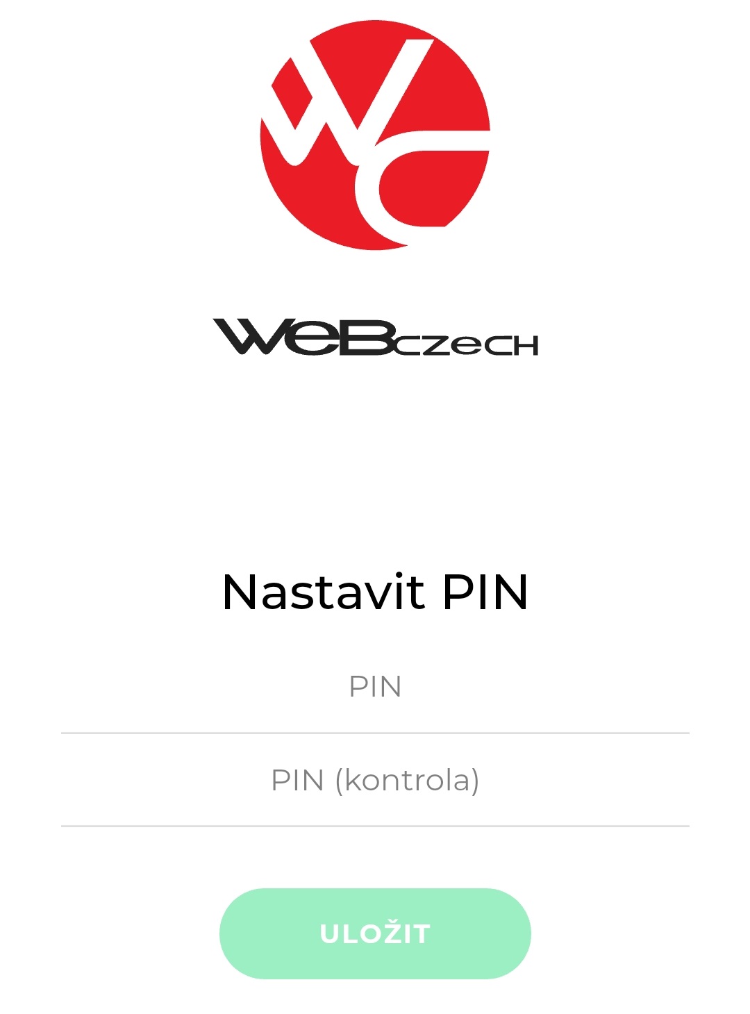 4. Následně si vytvoříme PIN kód na přihlášení do aplikace. V případě, že zařízení umožňuje přihlášešní otiskem prstu, je možné místo pinu použít otisk.