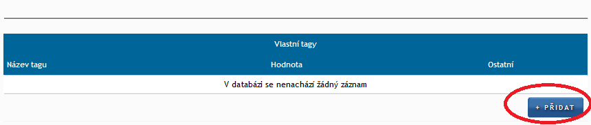 V tomto případě přejdeme na možnost vložit vlastní tagy, kde klikneme na tlačítko "+ přidat"