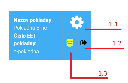 - 1.1 - Přejít do nastavení. Tato možnost není dostupná pro administrátora, který nemá právo upravovat nastavení pokladny
