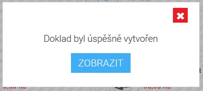 Po kliknutí na tlačítko vytisknout účet se zpracují produkty, vytvoří nová objednávka, pokud není žádná vybraná, vygeneruje doklad a pokud se má doklad zaslat e-mailem, doklad se odešle zákazníkovi. Následně se nám zobrazí okno s možností zobrazit vygenerovaný doklad pro dodatečný tisk.