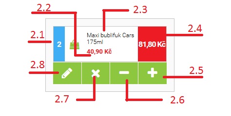 Produktový košík obsahuje všechny produkty, které byly vložené pomocí pokladny. Tyto produkty je možné upravit nebo odstranit.