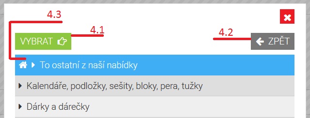 Svůj výběr potvrdíme tlačítkem "vybrat" (tlačítko 4.1)