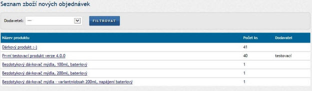 Seznam zboží nových objednávek