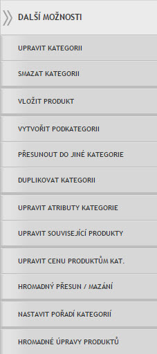 (modrá tužka) - v tomto případě bude zobrazena editace základních údajů kategorie - Ve stromu kategorií kliknete na danou kategorii - kompletní možnosti nastavení kategorie se zobrazí v pravém sloupci