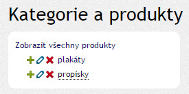 Nápověda >> Menu Kategorie a produkty >> Kategorie >> Vložení kategorie do již existující kategorie (vložení podkategorie)