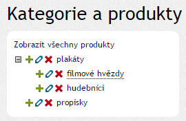 Přidání podkategorie vyvoláte kliknutím na ikonu